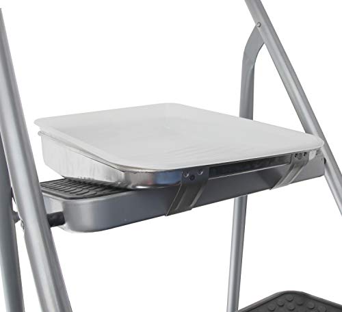 - DESIGN- This metal paint tray bundle pack is reusable, And special designed to ease painting, The plastic paint tray liners that comes with it will make it much easier to clean when done painting. The metal tray has a sturdy ribbed roll off area for even loading. It is designed with toggled legs for ladder support that will make your painting job much easier. The paint tray works with all paint tools such as paint rollers, paint brush, etc. Paint tray that will save you time, money and effort.