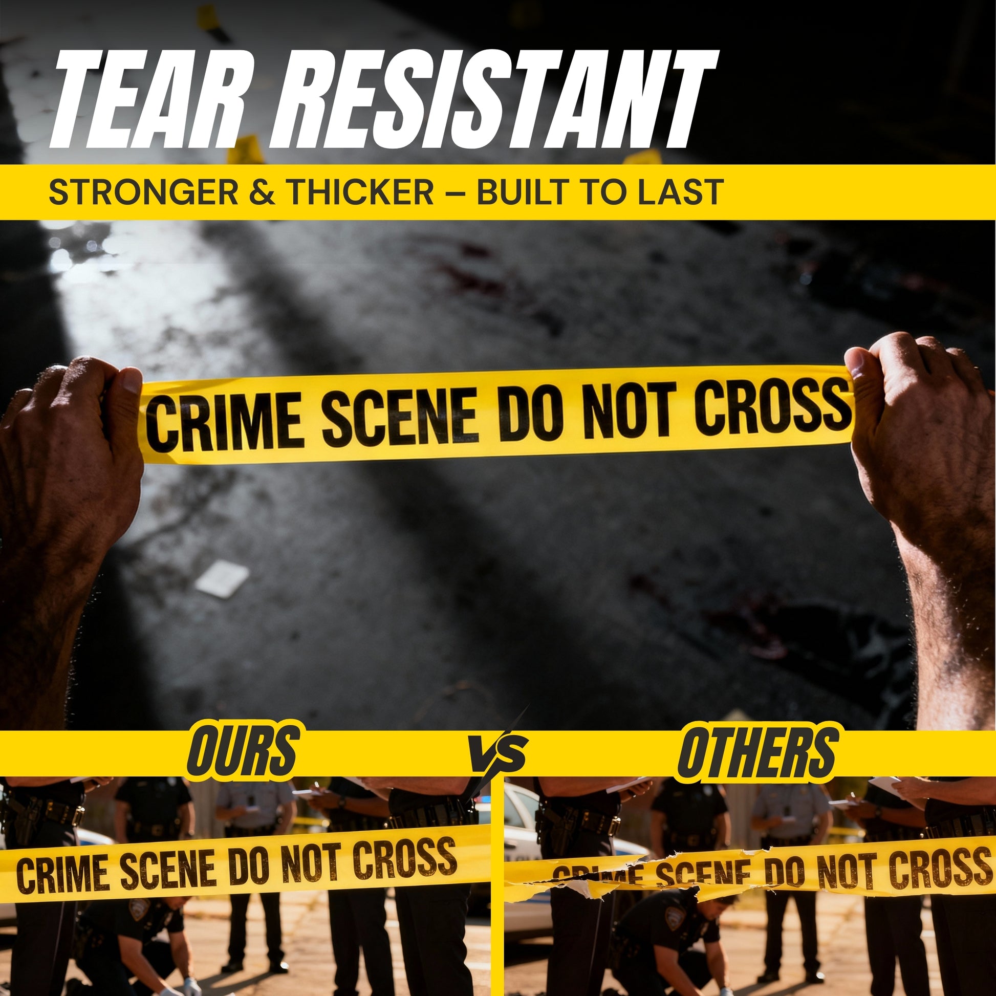 - Tear Resistant - Tapix Crime Scene Do Not Cross Barricade tape is made of polyethylene which is very durable, perfect for dangerous areas. It unrolls quickly and easily tacks into posts or trees.