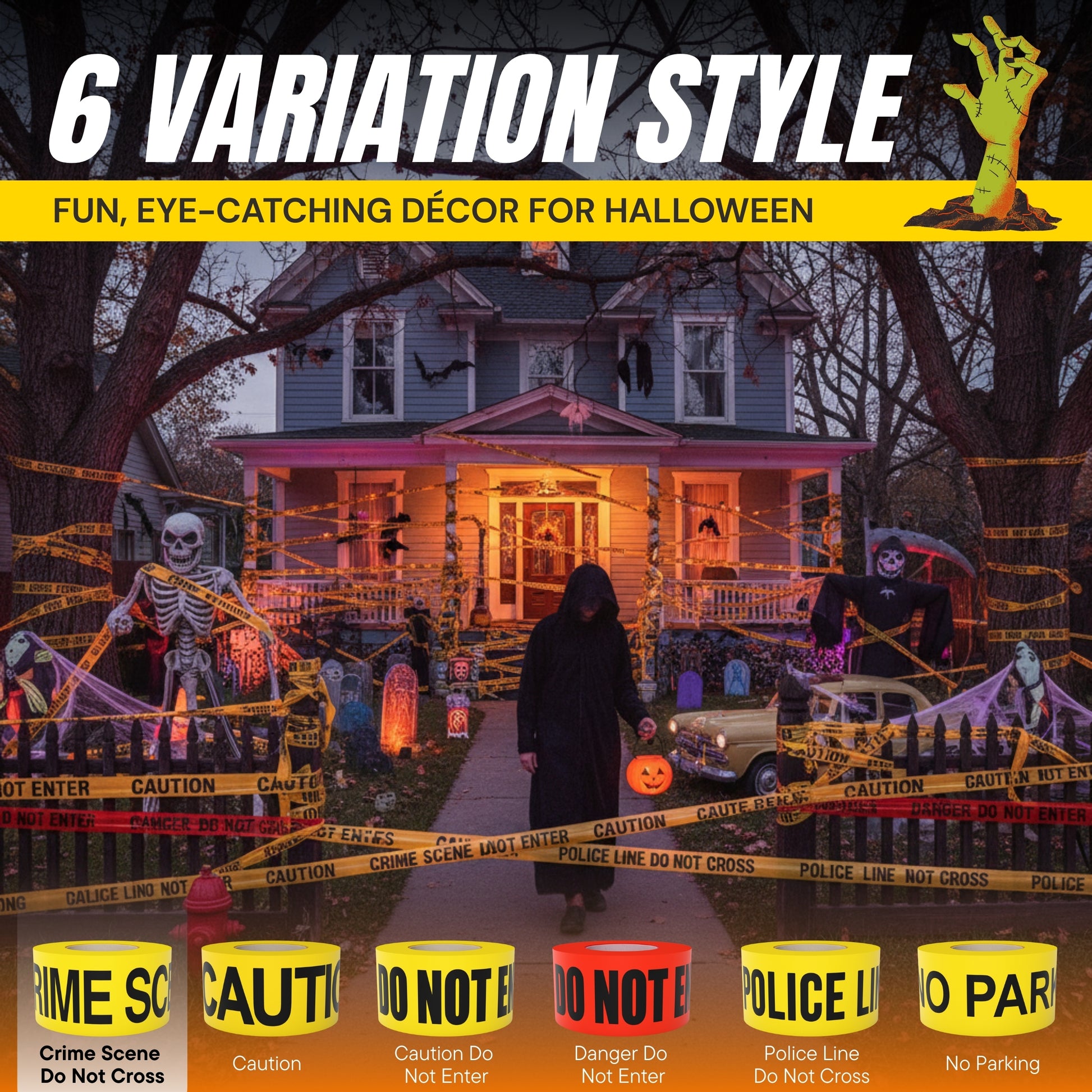 - Halloween Decoration - Crime Scene Do Not Cross party tape is perfect for Halloween party, zombie party, Halloween indoor outdoor yard decorations, these decorations will make you enjoy a memorable and cool Halloween party.