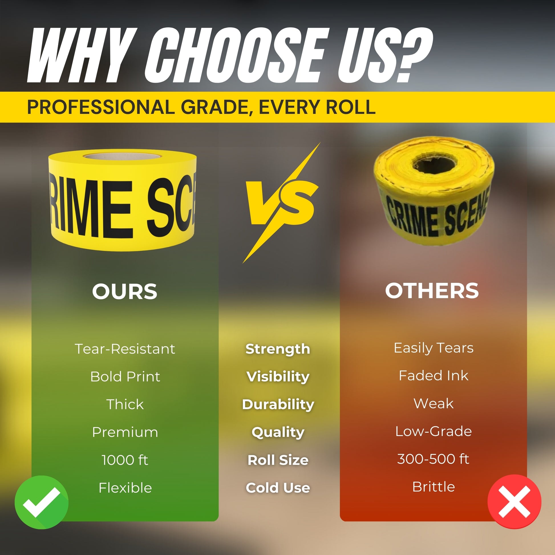 - Notable And Has High Visibility - The striking bright yellow color of the barricade tape makes a great contrast with the bold black text which makes it very noticeable when entering a hazardous area.